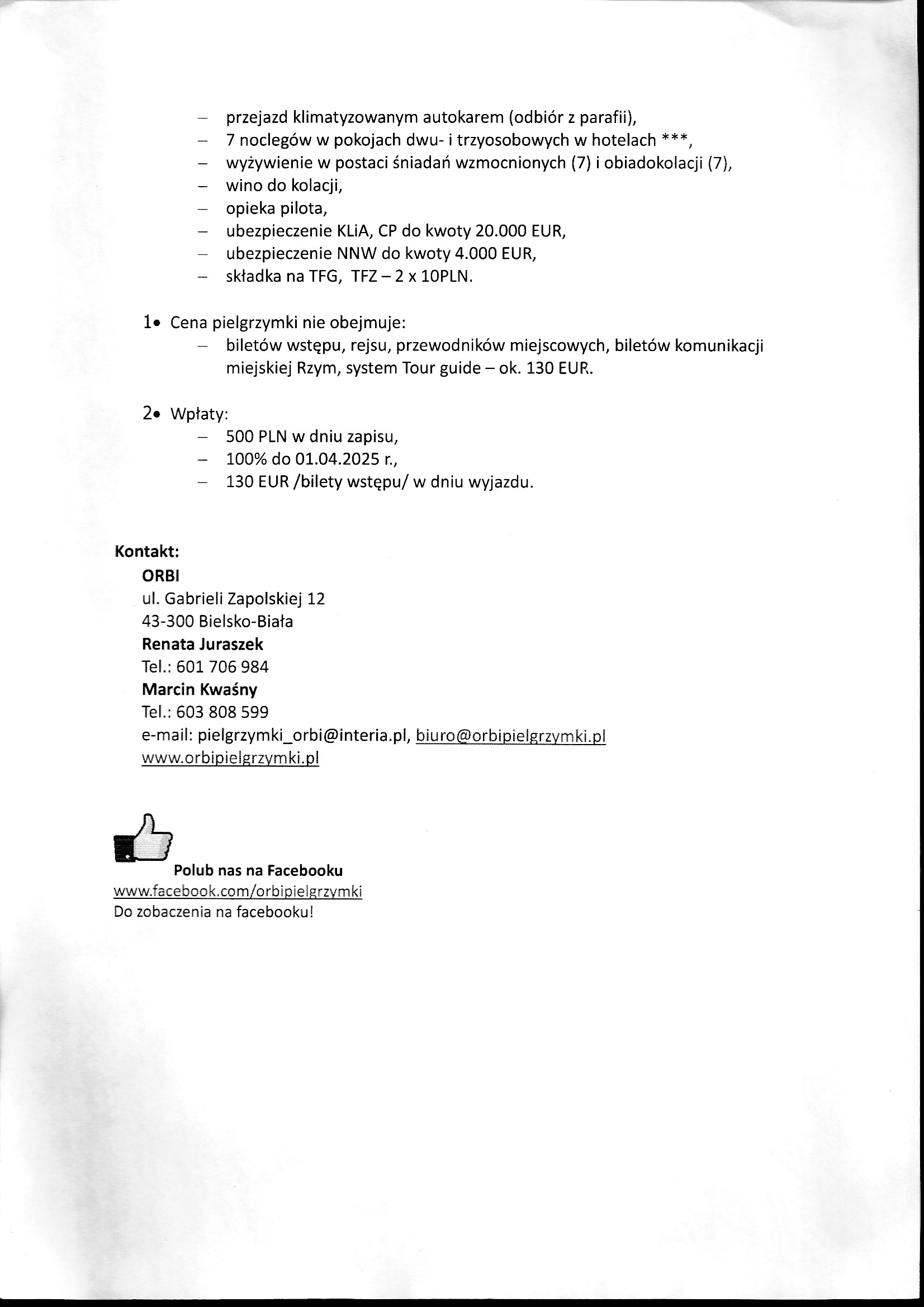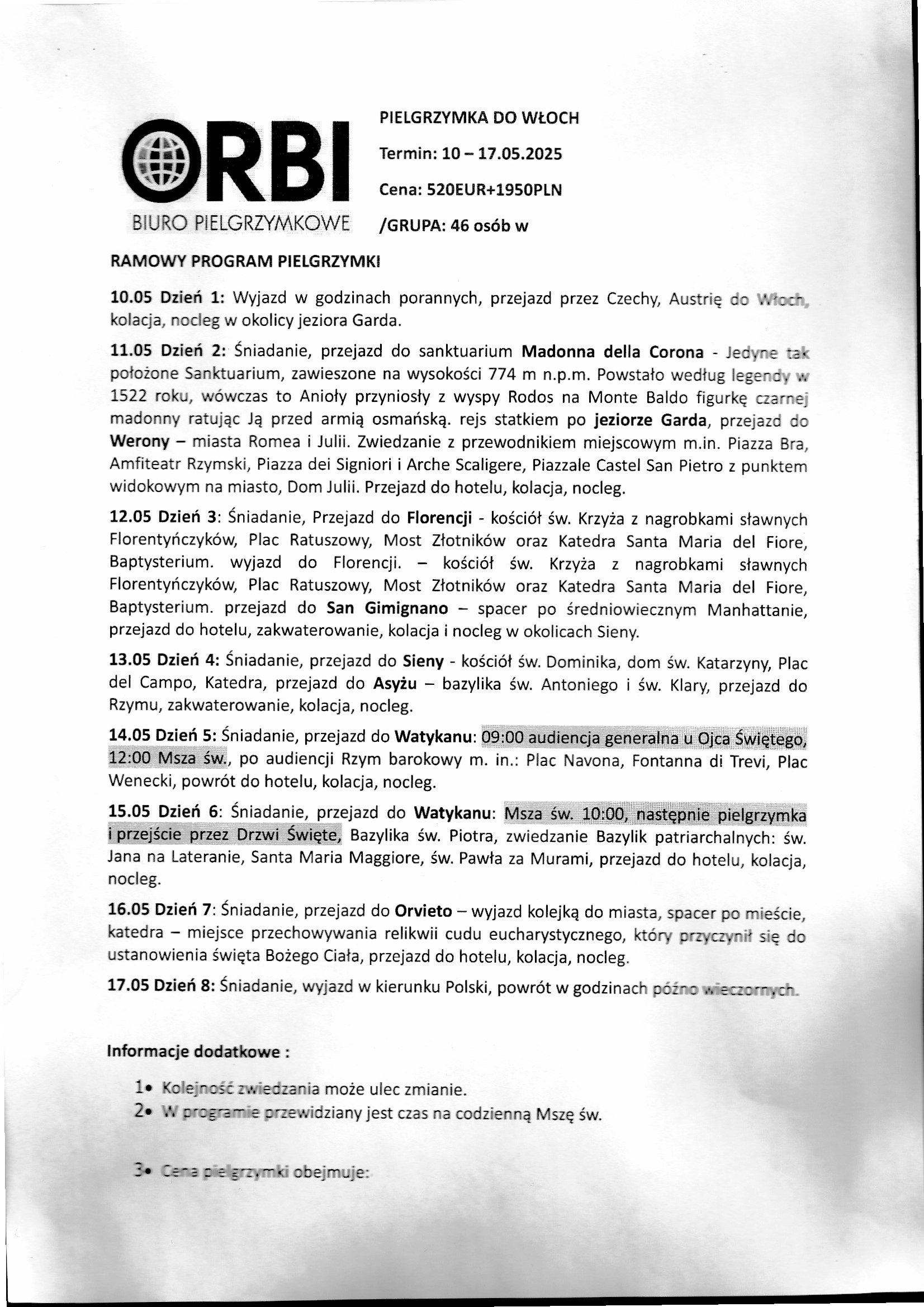Pielgrzymka do Włoch maj 2025