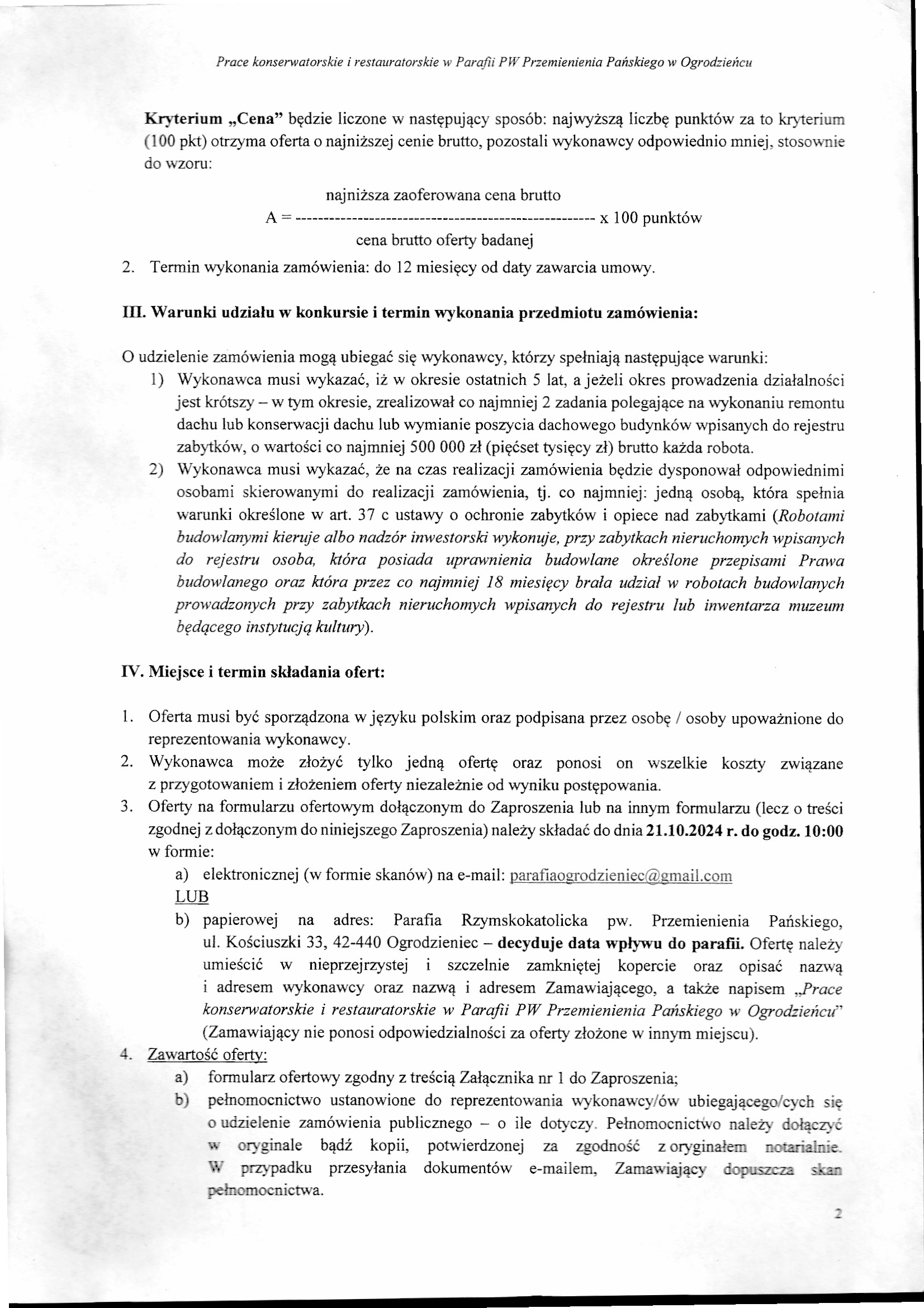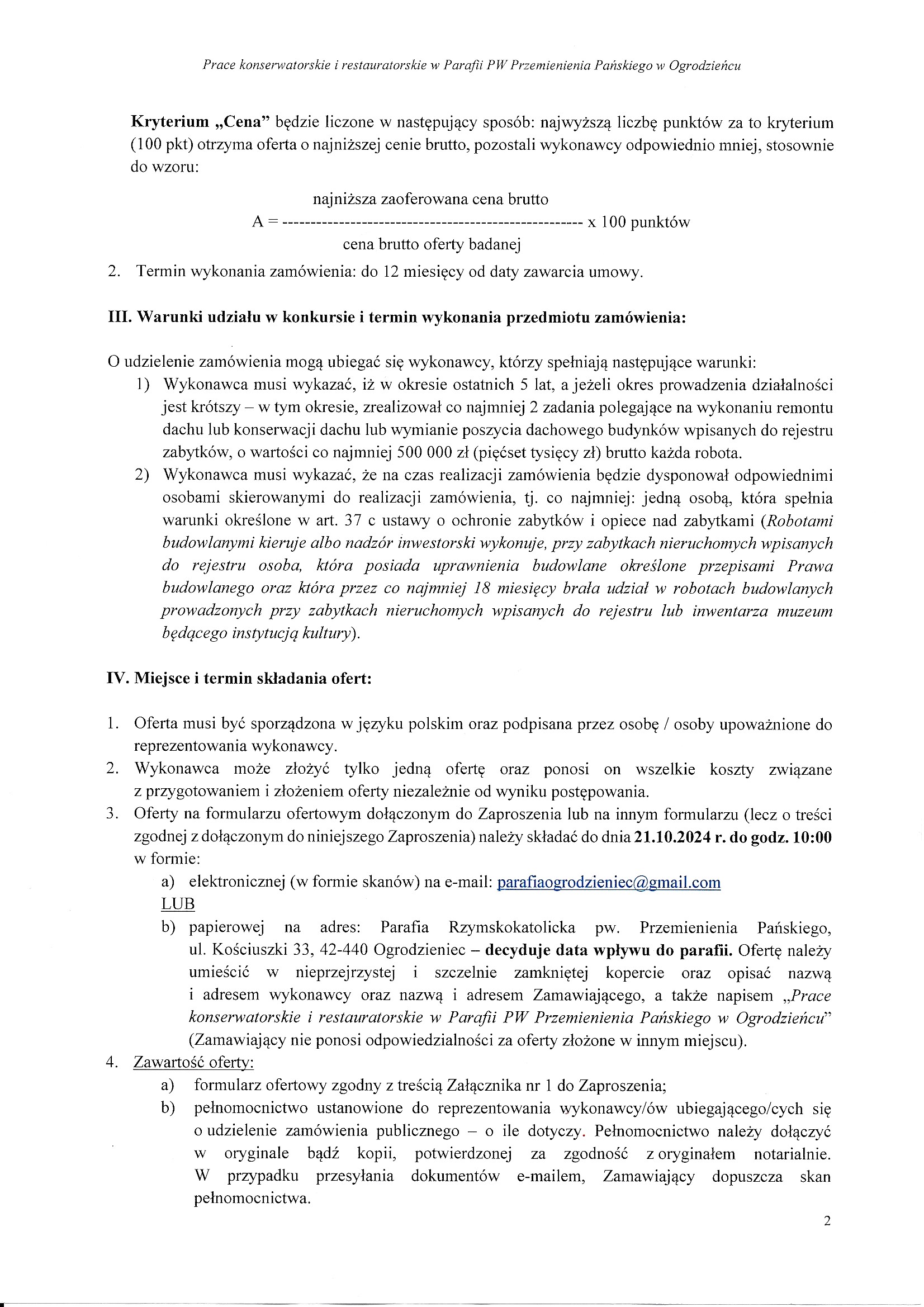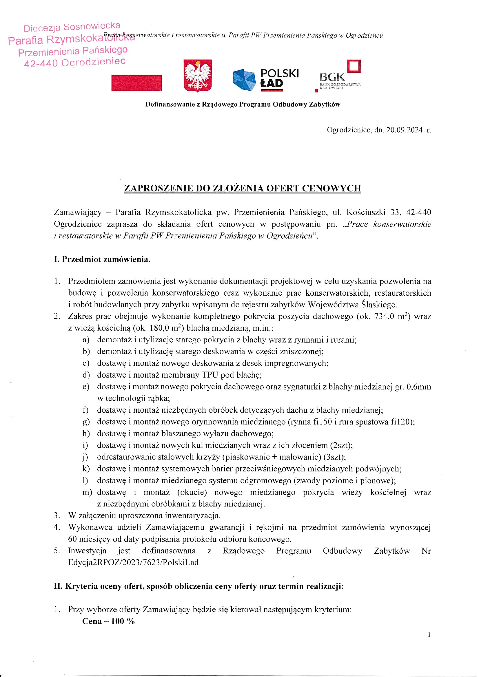 1. Prace konserwatorskie i restauratorskie w obiektach sakralnych Parafii PW Przemienienia Pańskiego w Ogrodzieńcu