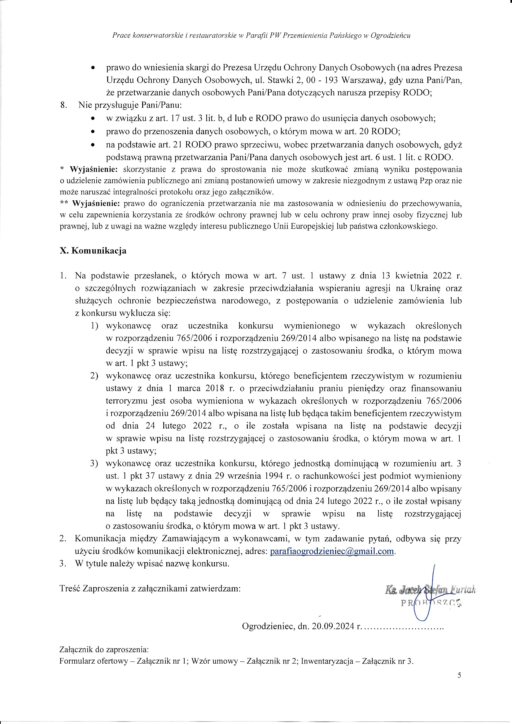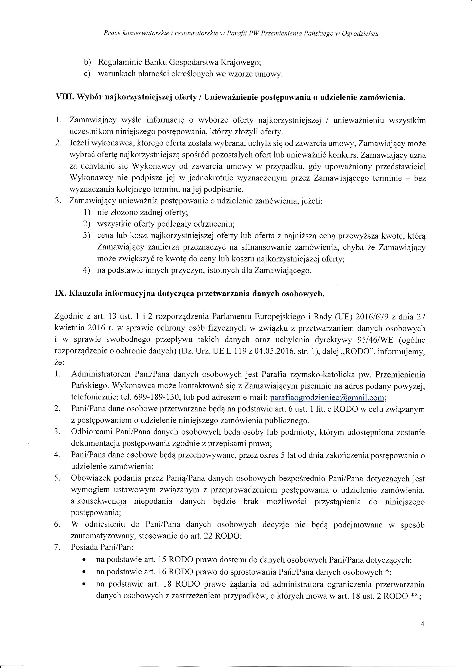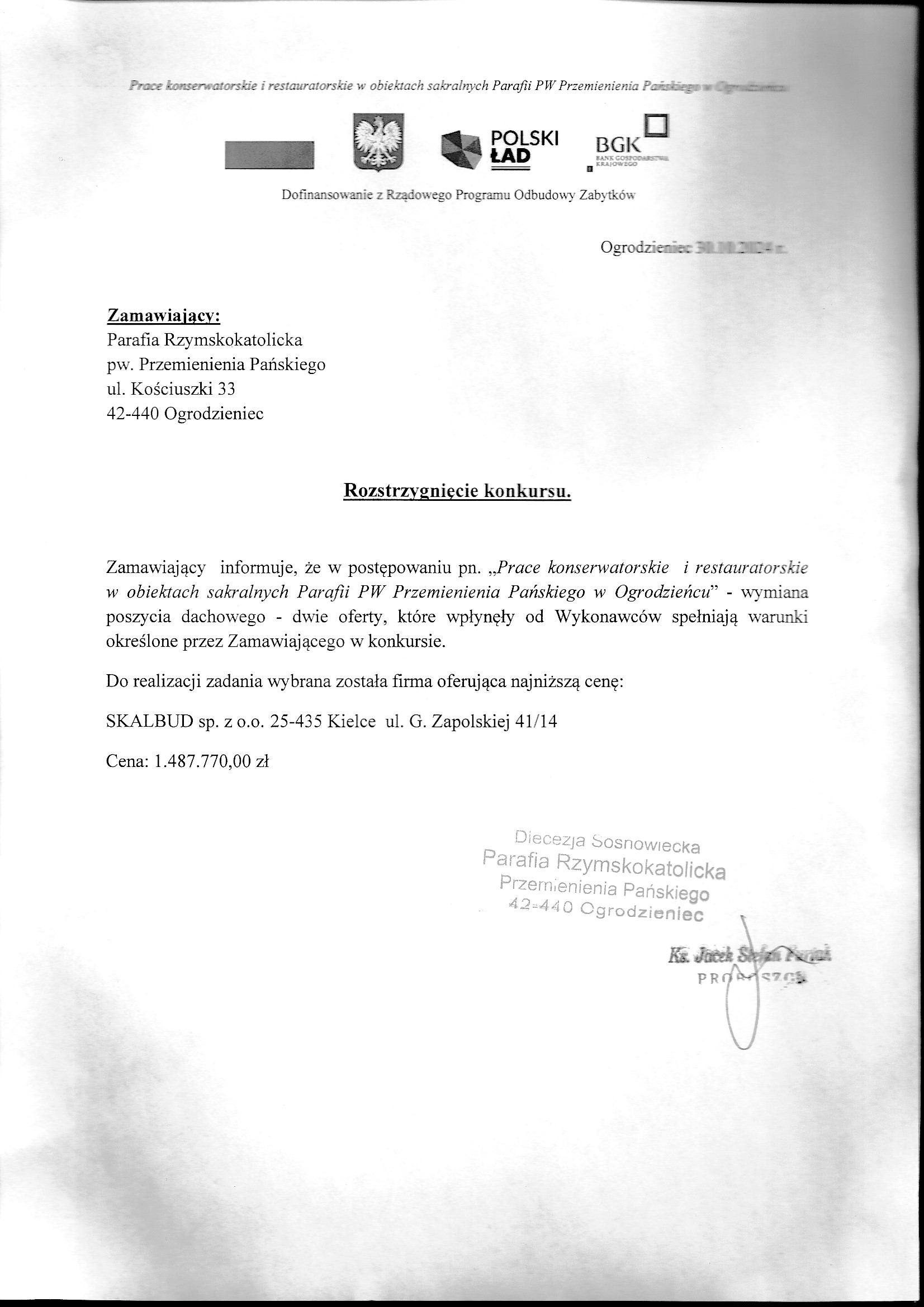 1. Prace konserwatorskie i restauratorskie w obiektach sakralnych Parafii PW Przemienienia Pańskiego w Ogrodzieńcu