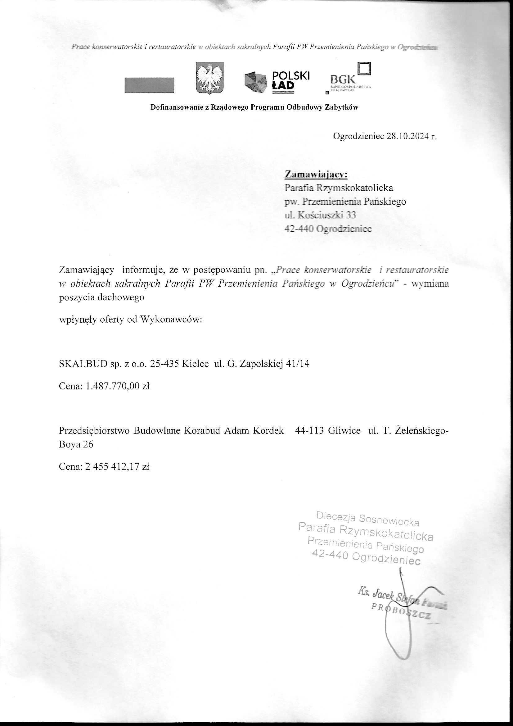 Informacje o przesłanych ofertach na prace konserwatorskie poszycia dachowego